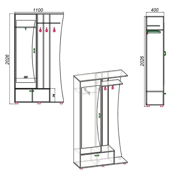 Передпокій доставляється клієнту у фабричній упаковці в розібраному вигляді з фурнітурою та схемою для збірки, всі технічні отвори просвердлені, так що зібрати шафу можна самому без особливих зусиль.